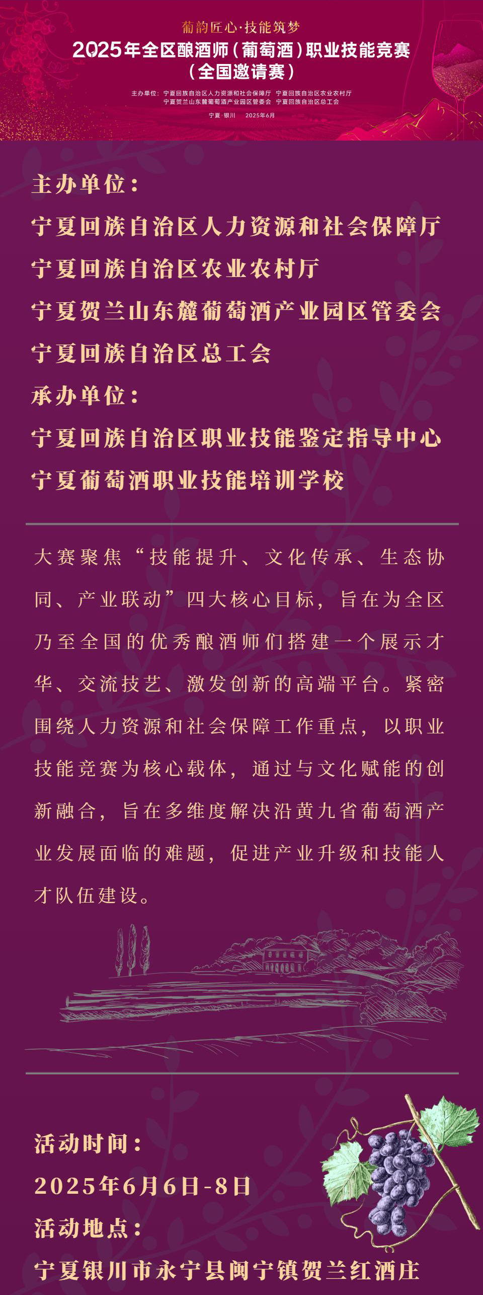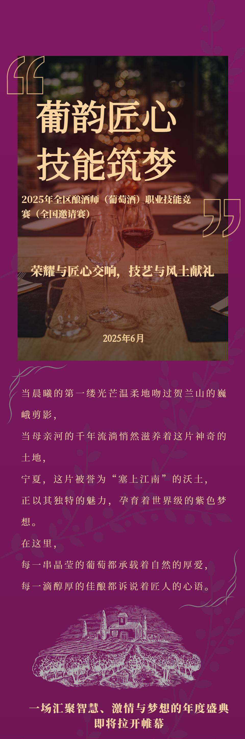 “葡韵匠心 技能筑梦”2025年全区酿酒师(葡萄酒)职业技能竞赛(全国邀请赛)即将开启!