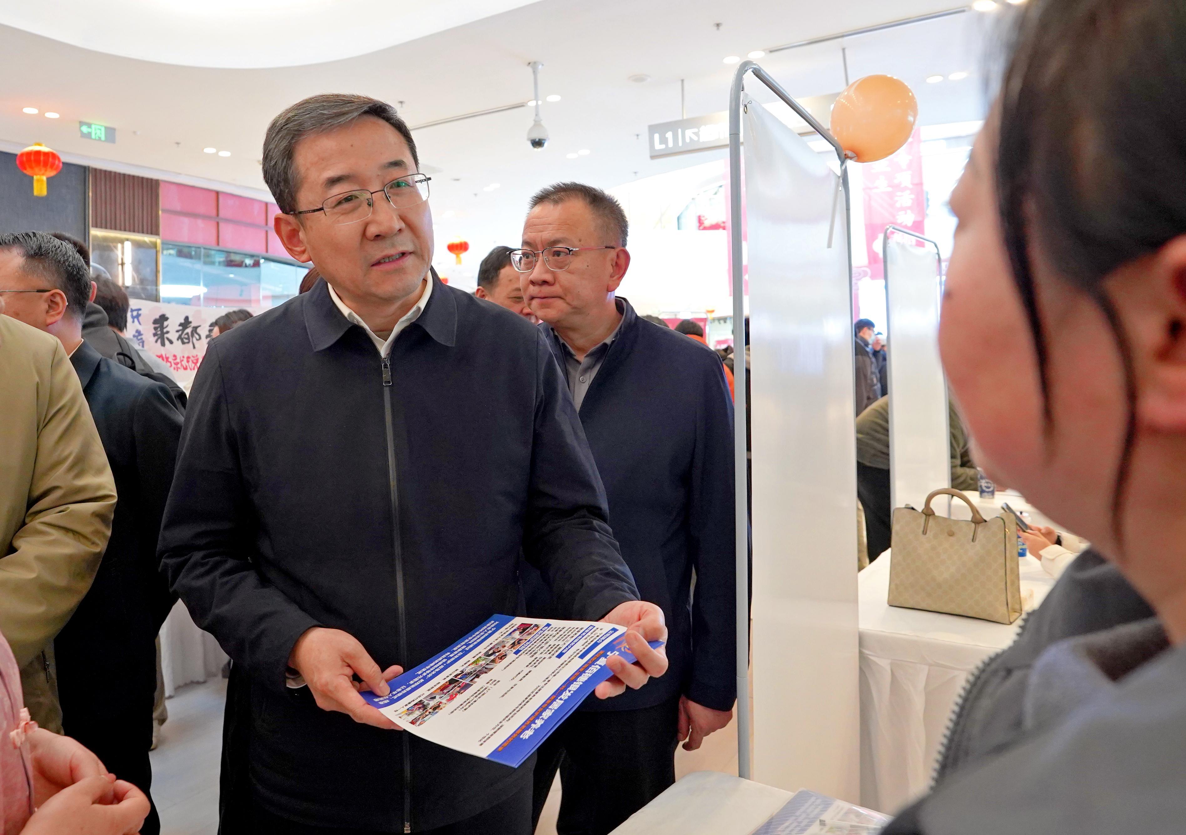 1月23日,2026年“职引未来·就在宁夏”高校毕业生就业服务与春风行动暨就业援助季专场招聘活动,在银川市兴庆区吾悦广场举行。自治区人力资源社会保障厅党组书记、厅长金万宏参加启动仪式,并与招聘企业及到场求职的大学生交流,听取意见建议。