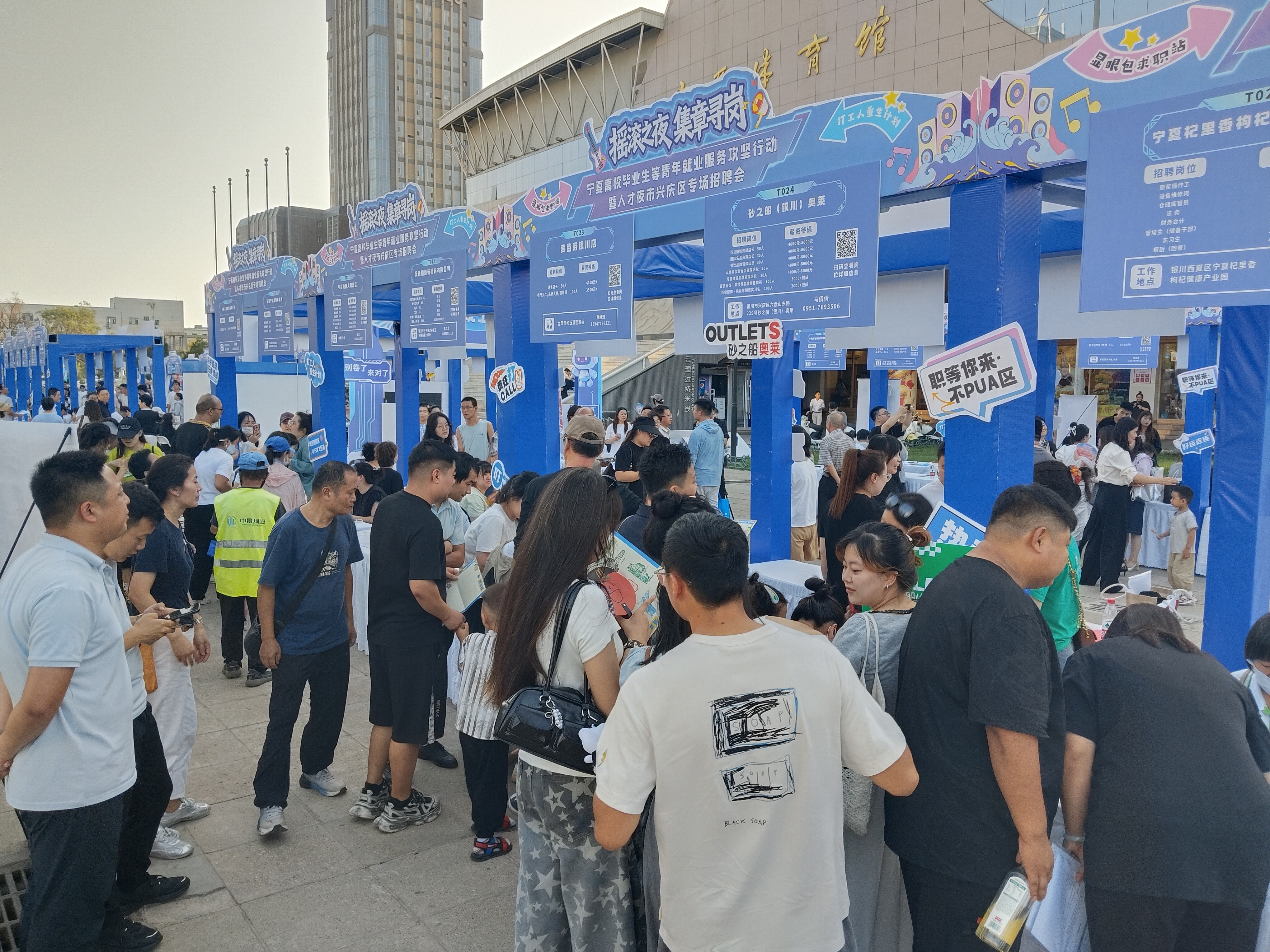8月15日晚,银川市兴庆区光明广场灯火通明,2025年宁夏高校毕业生等青年就业服务攻坚行动暨人才夜市兴庆区专场招聘会热闹启幕。这场集“招聘+科技+文化+服务”于一体的夜市,成了青年求职者的“就业加油站”。
